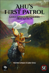 Als Mirco im Februar dieses Jahres in Berlin war, hatte er mitunter das Vergnügen, einen One Shot in der Welt von Kaung Pi spielen zu dürfen. Spielleiter war Martelo Schwarz. Jener Martelo Schwarz, der mit „Ahu’s First Patrol“ sein erstes Adventure Game Book via Crowdfunding veröffentlichen möchte. Die Geschichte spielt ebenfalls in der zuvor genannten Spielwelt. Den Autor hatte Mirco während der Corona-Zeit kennengelernt und 2024 auf der Berlin Brettspiel Con erstmals persönlich getroffen.
